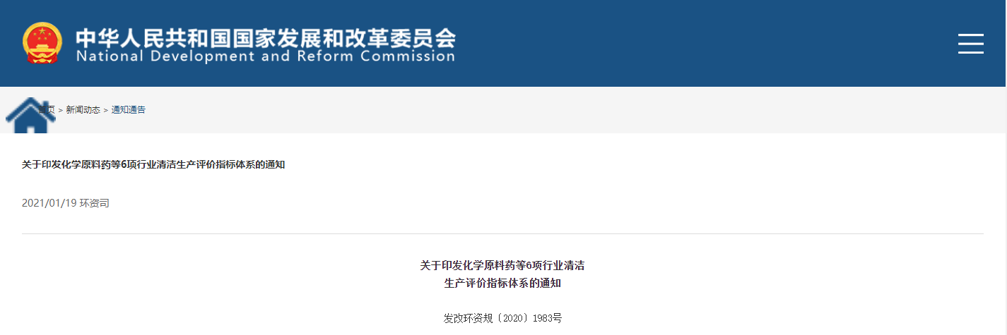关于印发化学原料药等6项行业清洁生产评价指标体系的通知